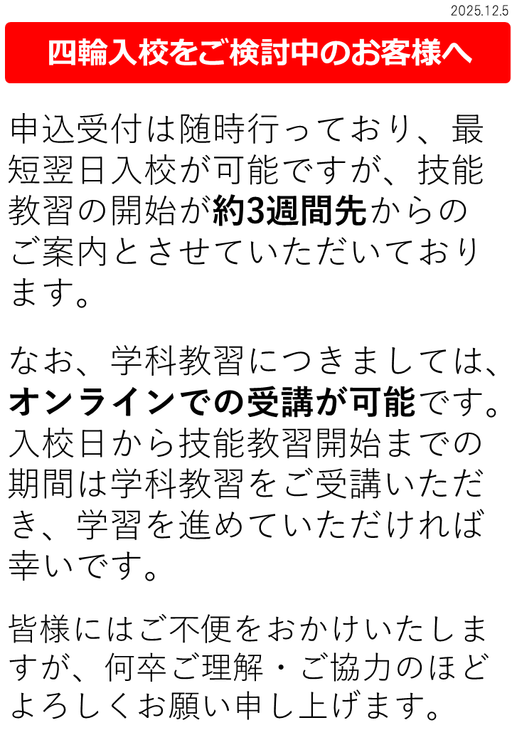 【重要】四輪入校をご検討中のお客様へ