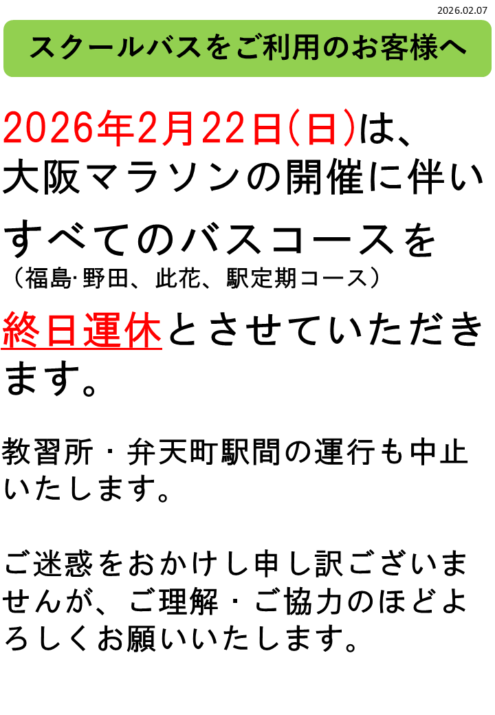 【お知らせ】2/22 スクールバス全コース運休について